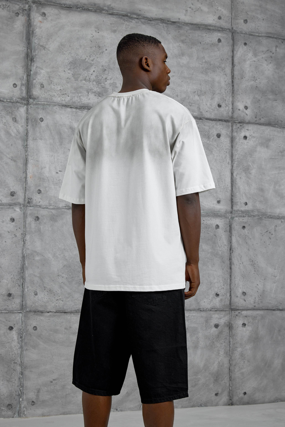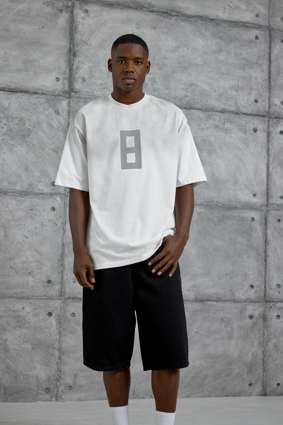 Beyaz 8 Rakam Baskılı Yıkamalı Tshirt
