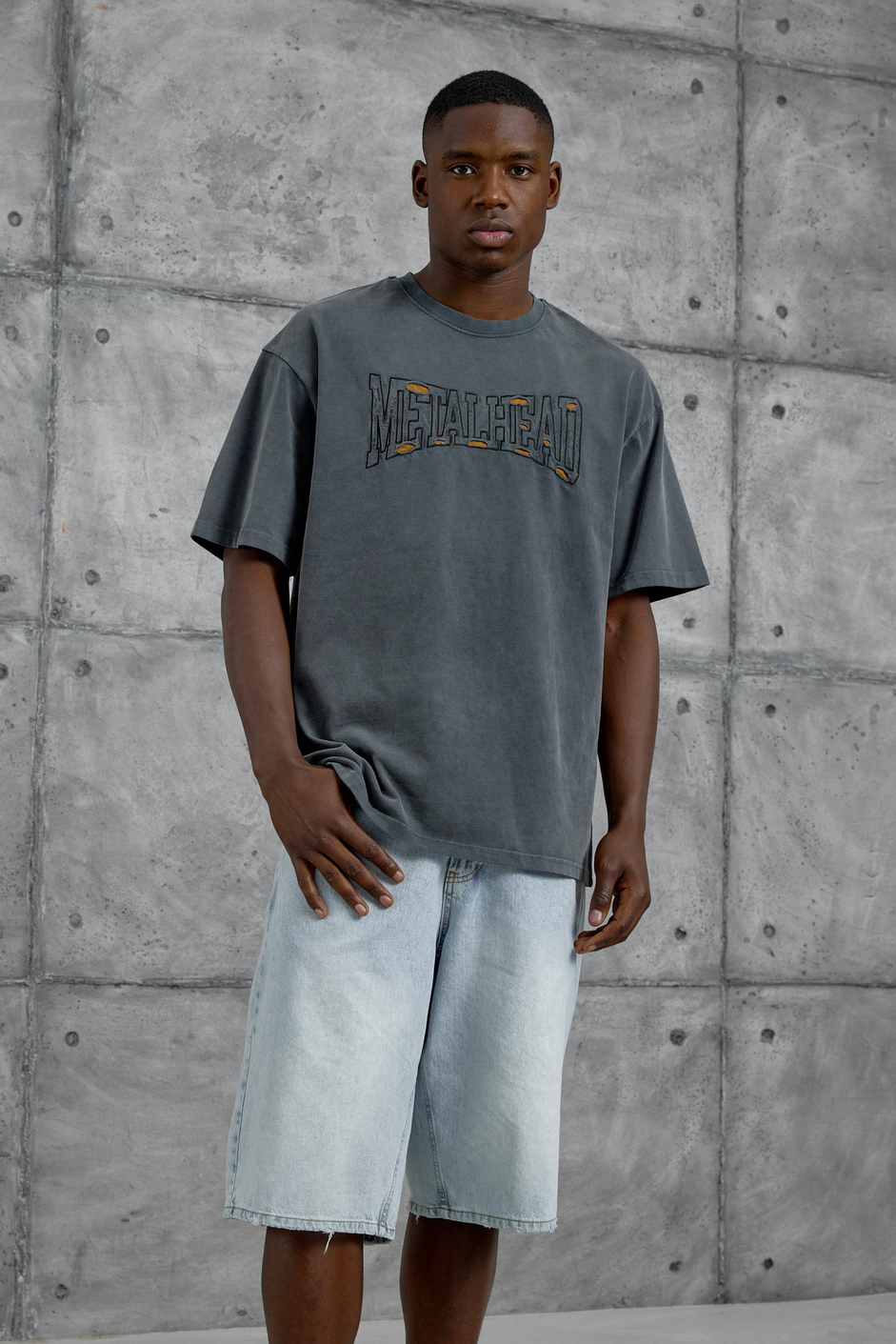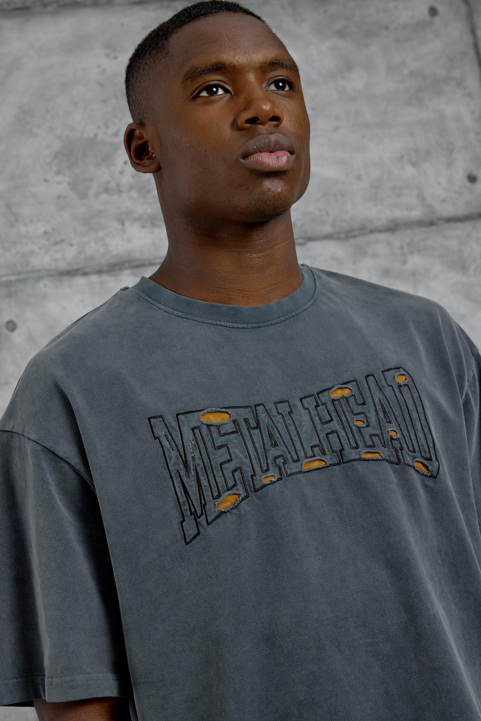 Füme Metalhead Yazılı Yıkamalı Tshirt