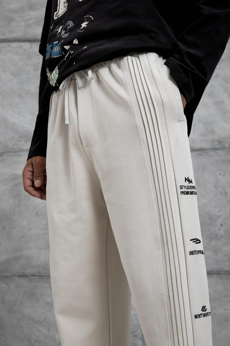 Krem Unstoppable Yazılı Baggy Kalıp Eşofman Altı