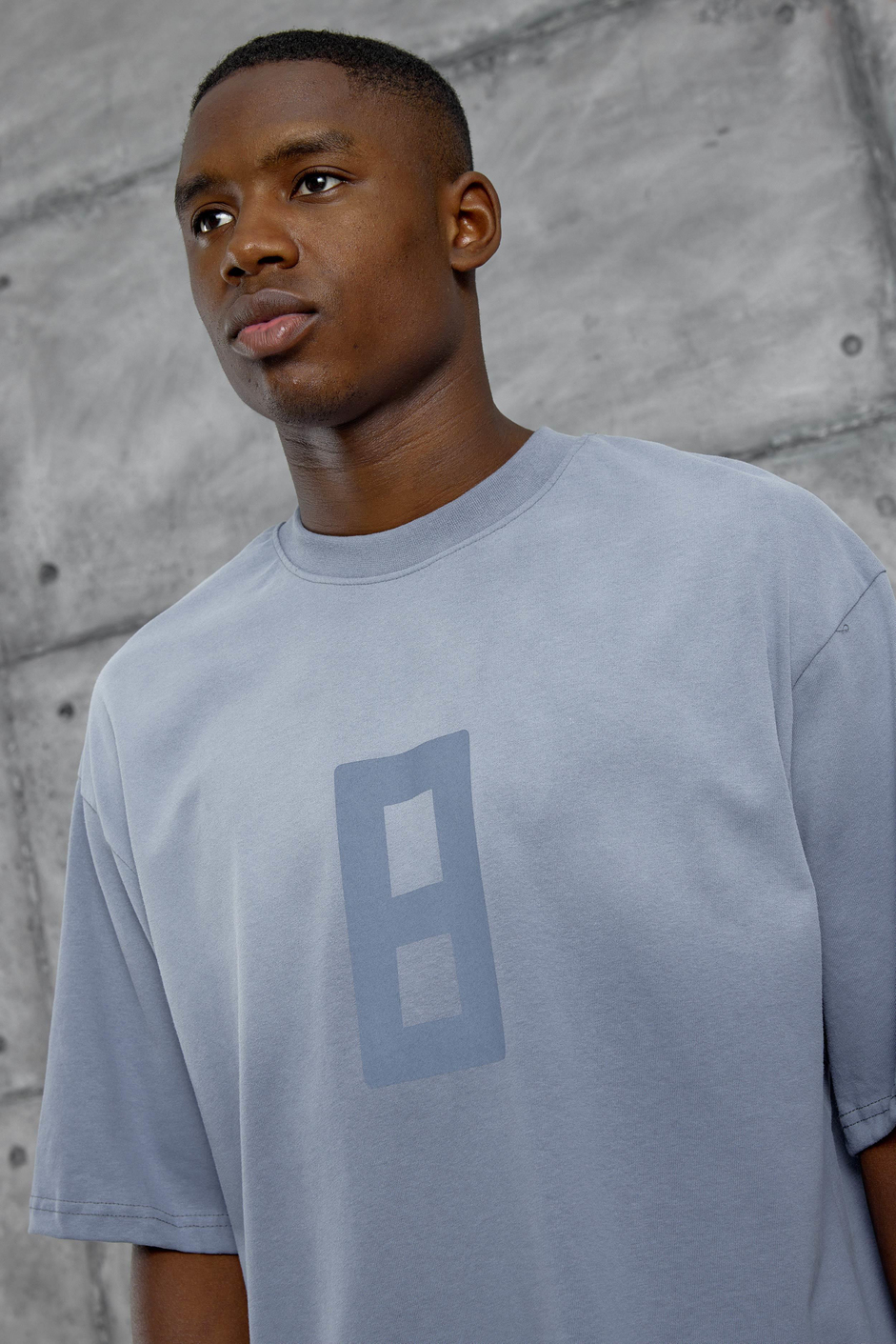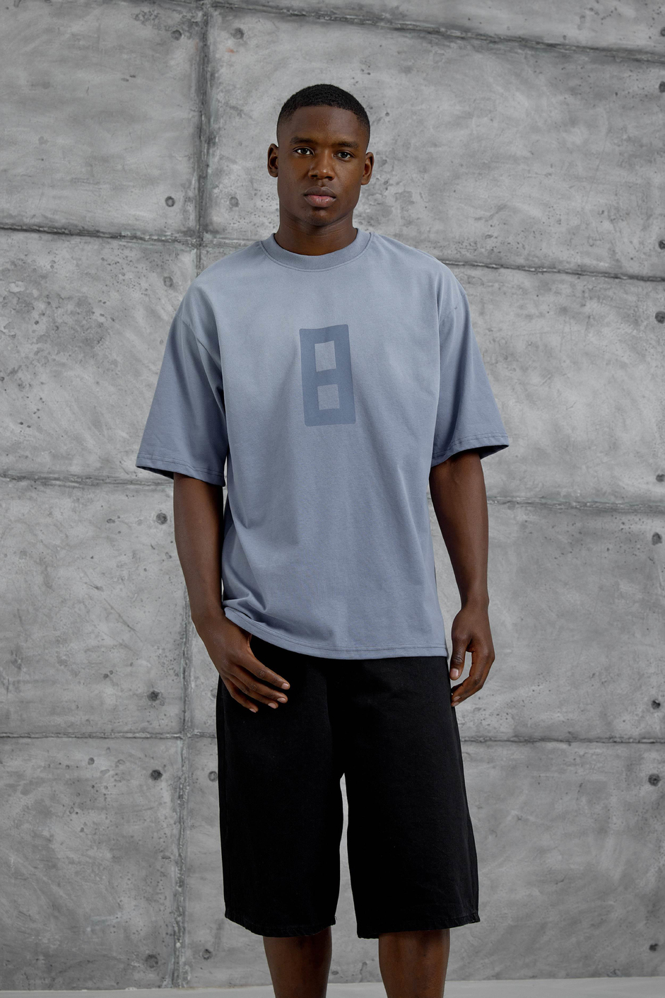 Mavi 8 Rakam Baskılı Yıkamalı Tshirt
